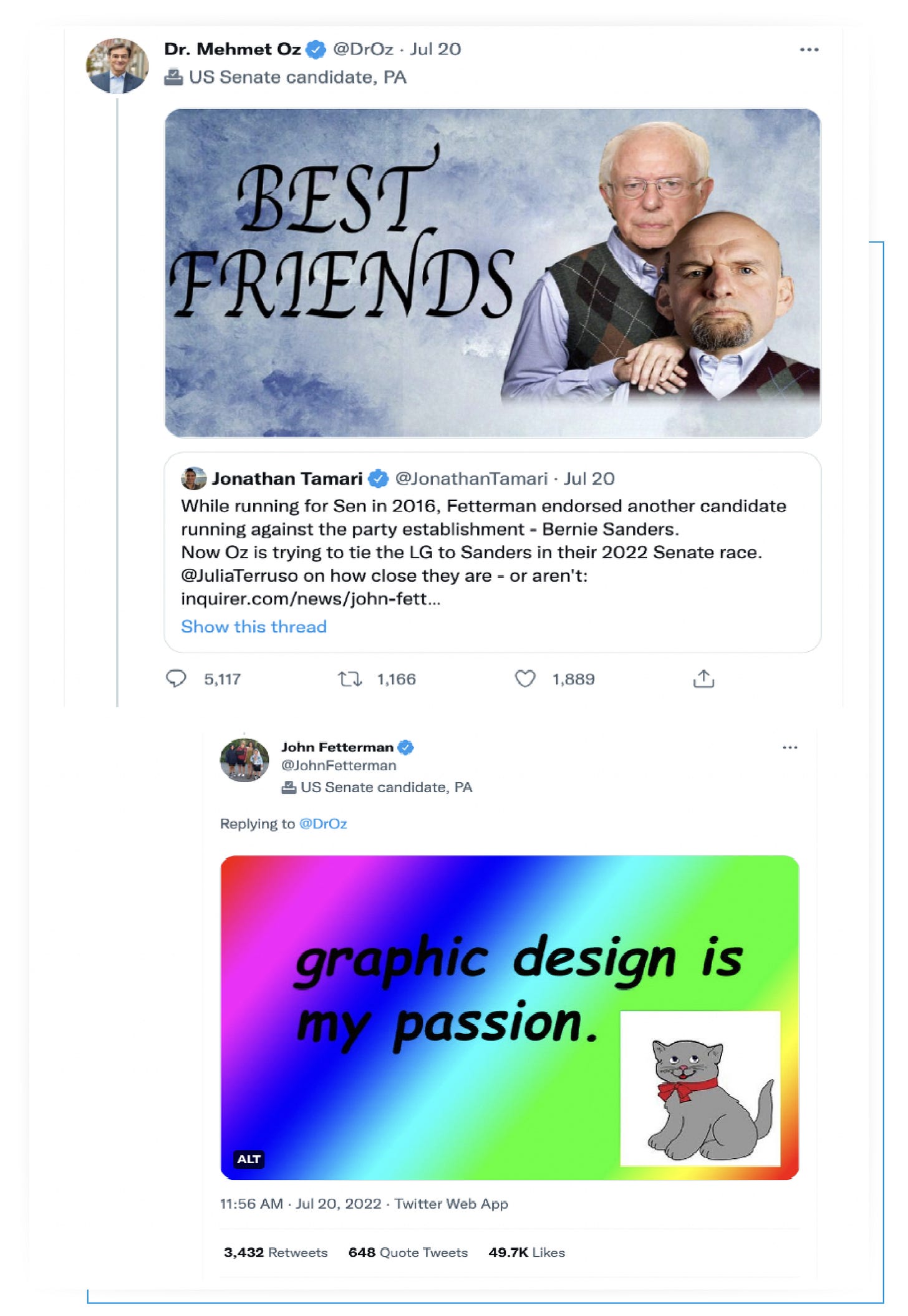 Fetterman’s online campaign strategy has called attention to the downfalls of his opponent in a way that not only grabs the attention of his audience but is also quite entertaining. After Dr. Oz posted a video attempting to criticize rising inflation but instead demonstrated how out-of-touch he is with your average blue-collar Pennsylvanian, Fetterman took to Twitter. The virality of this post helped the campaign raise $500,000 in less than 24hrs according to CNBC.