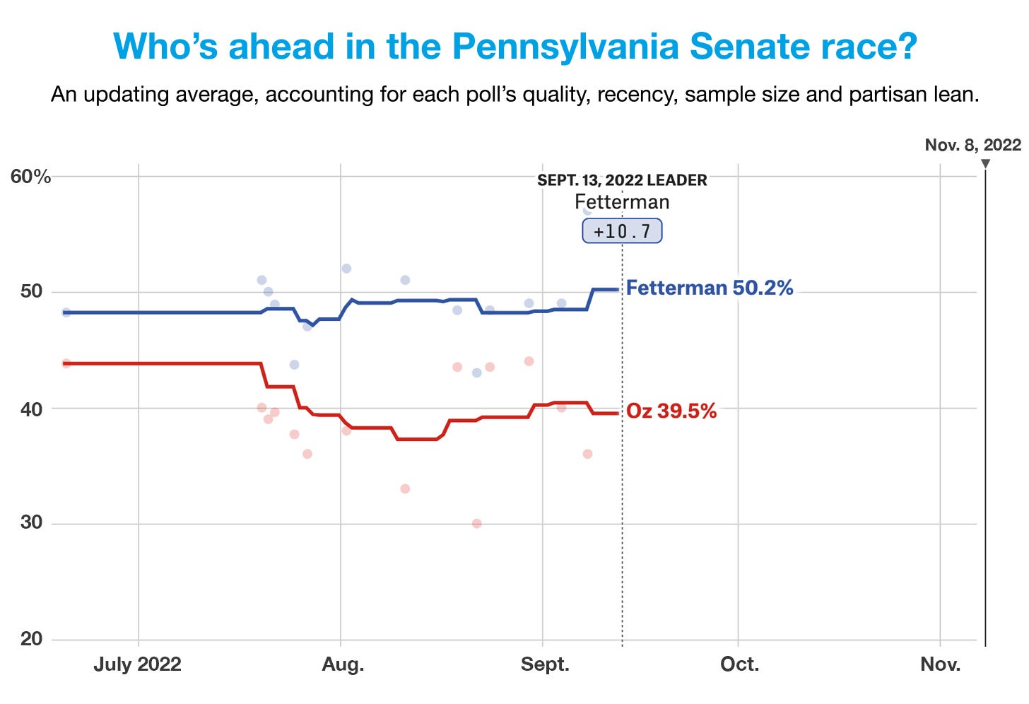 The polls currently show Fetterman up by 10 points over Dr. Oz, an unexpected result in one of the toughest years for Democrats.